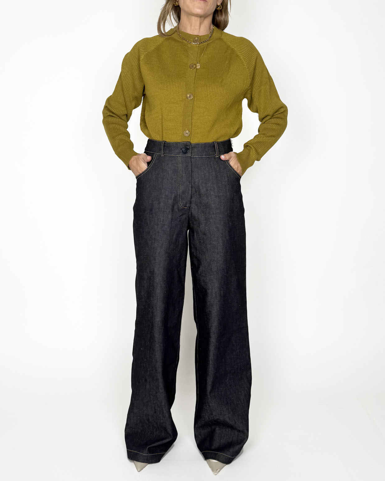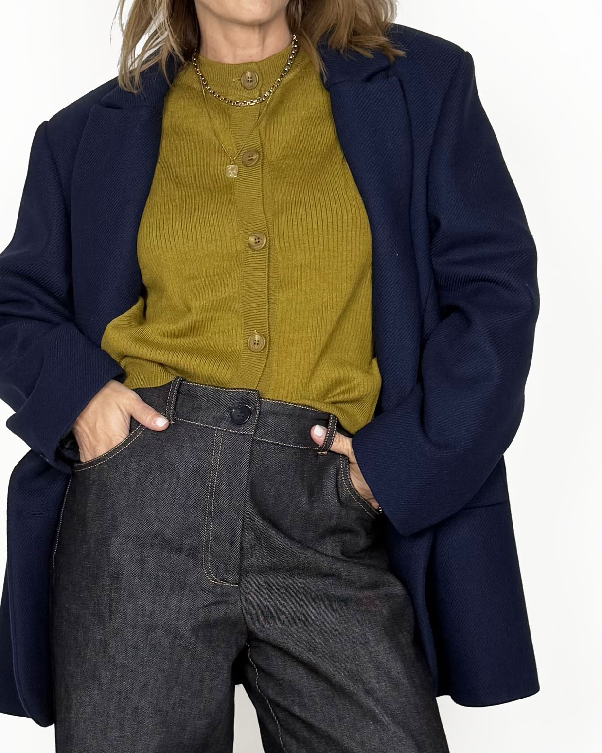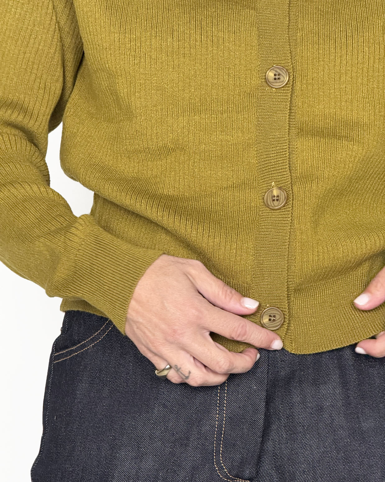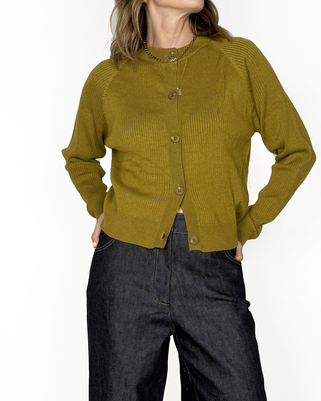 Cardigan a coste in misto lana viscosa, morbido, confortevole e con bottoni davanti in tono.