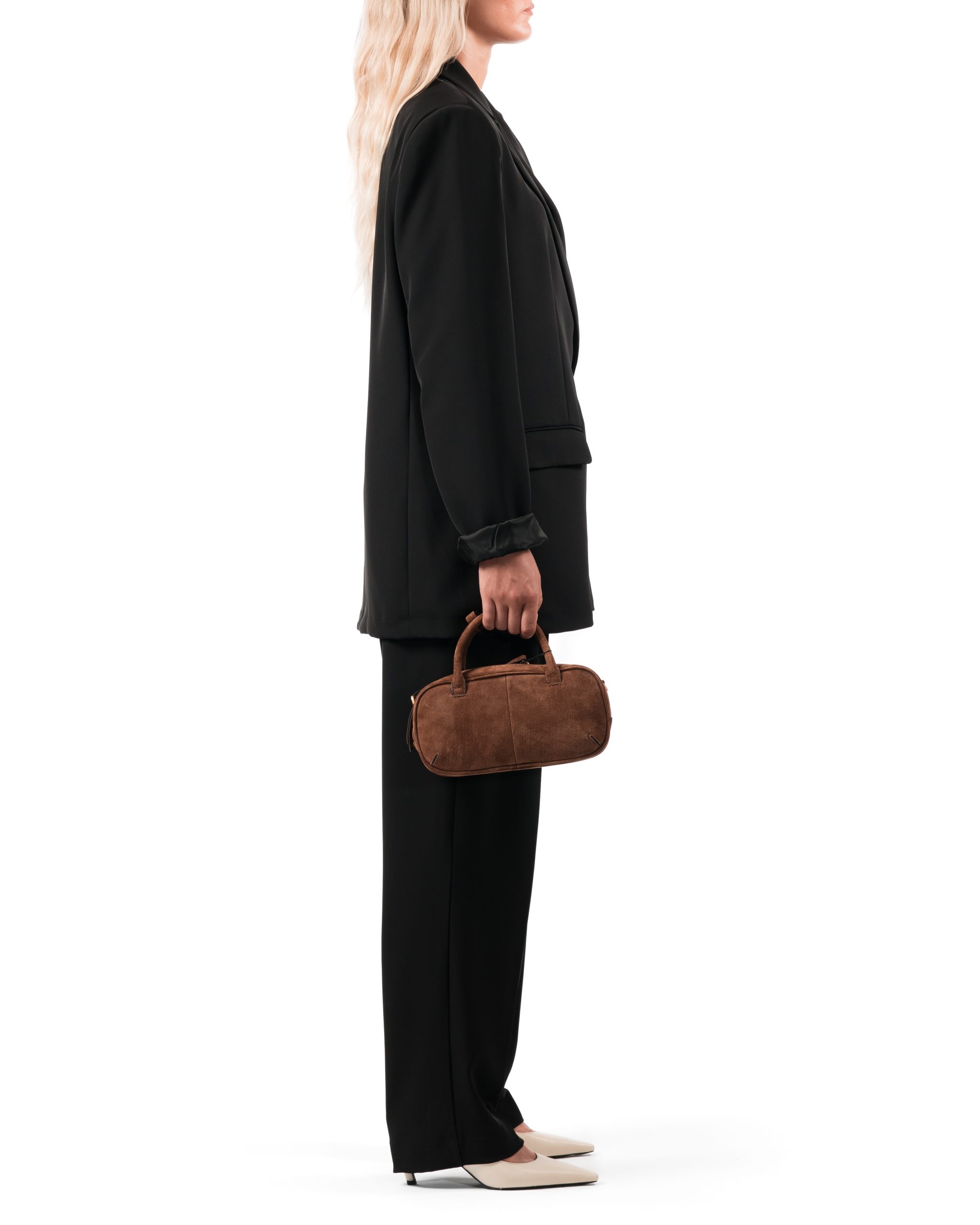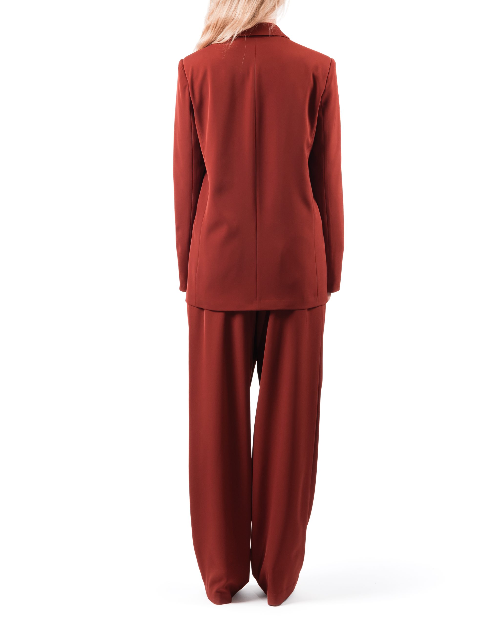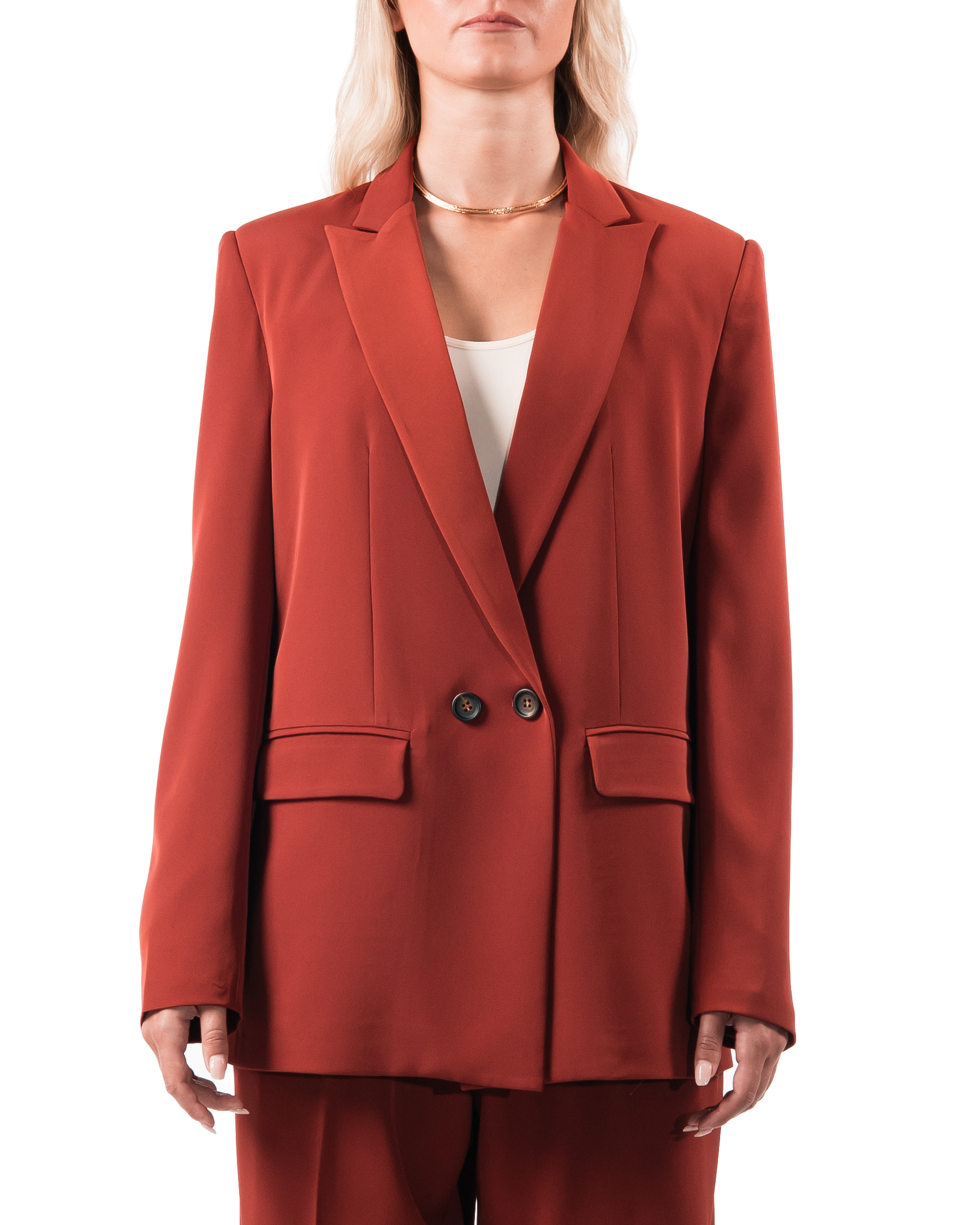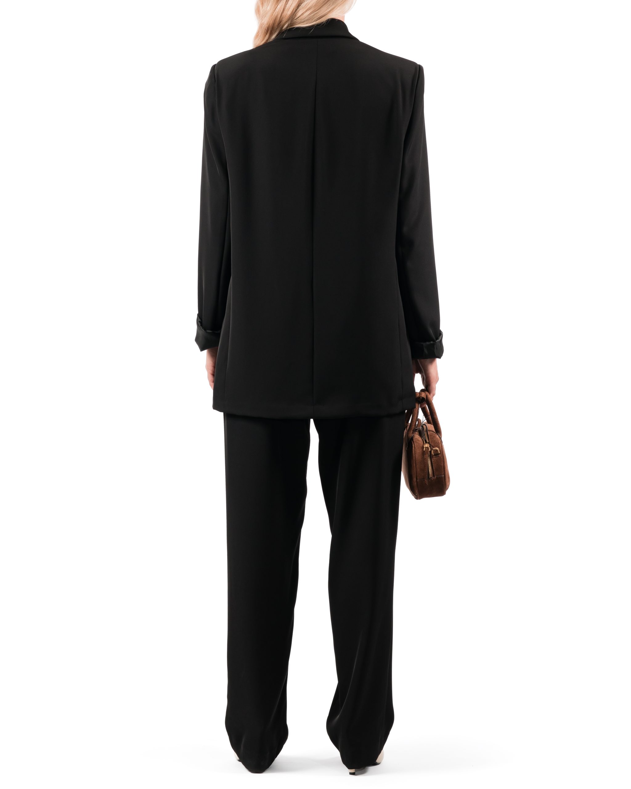 Blazer dal taglio sartoriale in crepe fluido, dalla linea dritta e morbida con leggero doppiopetto. Foderato in tono.