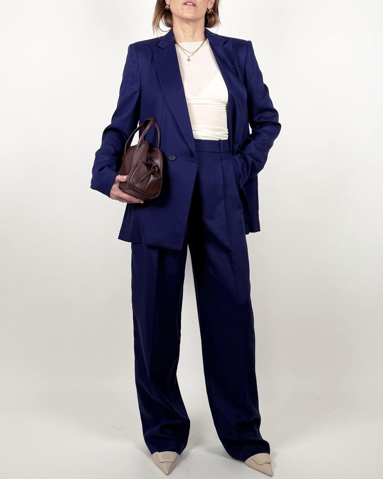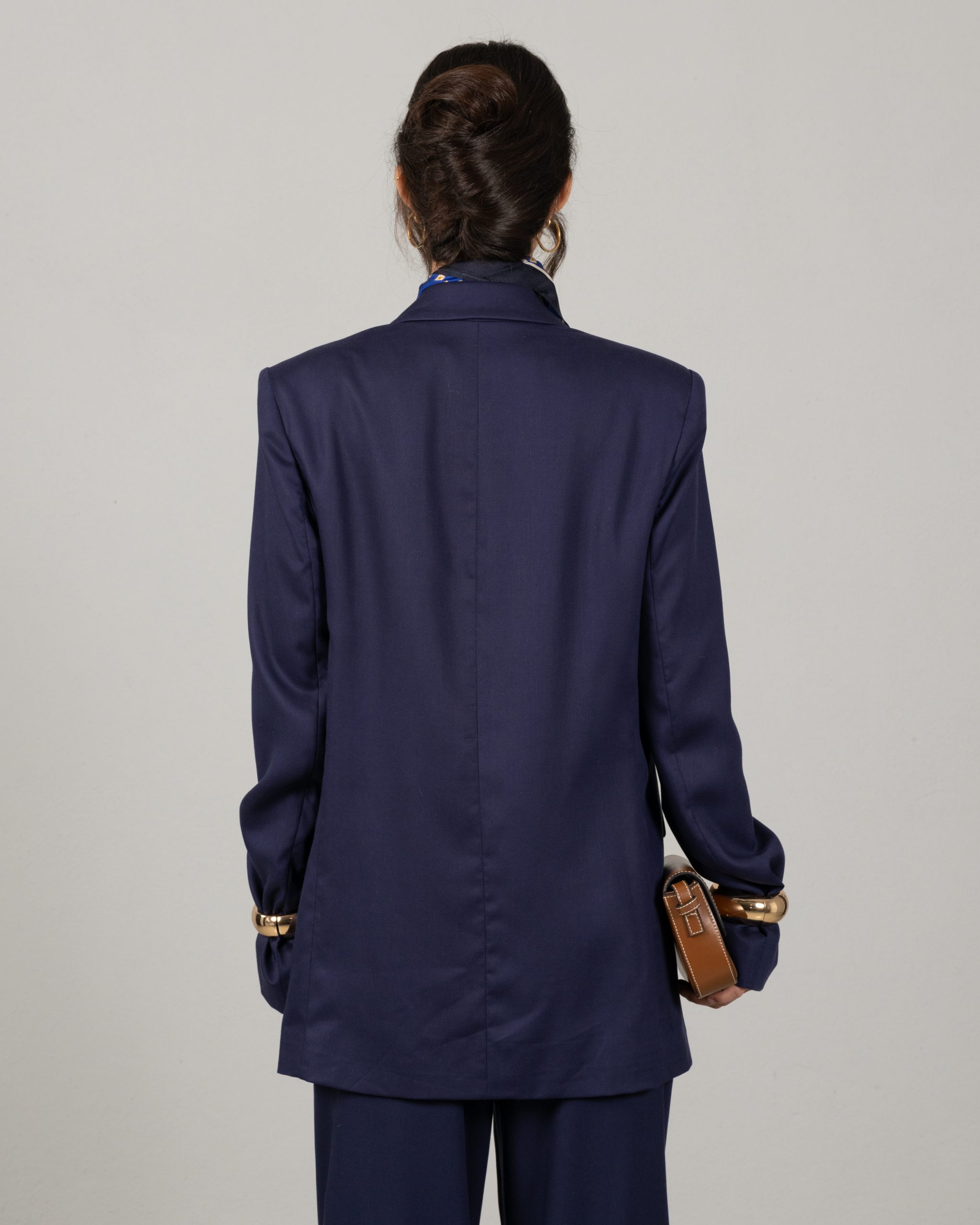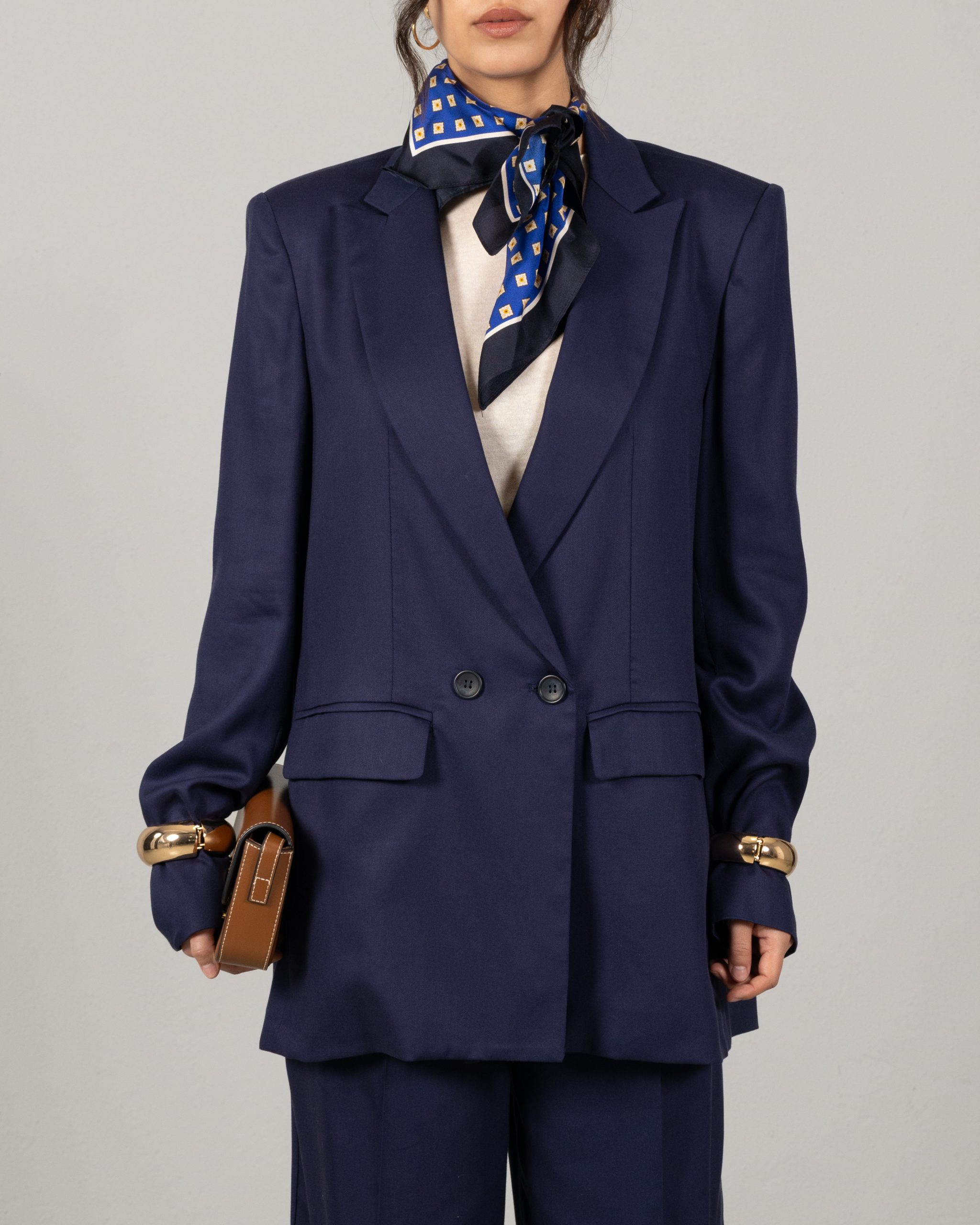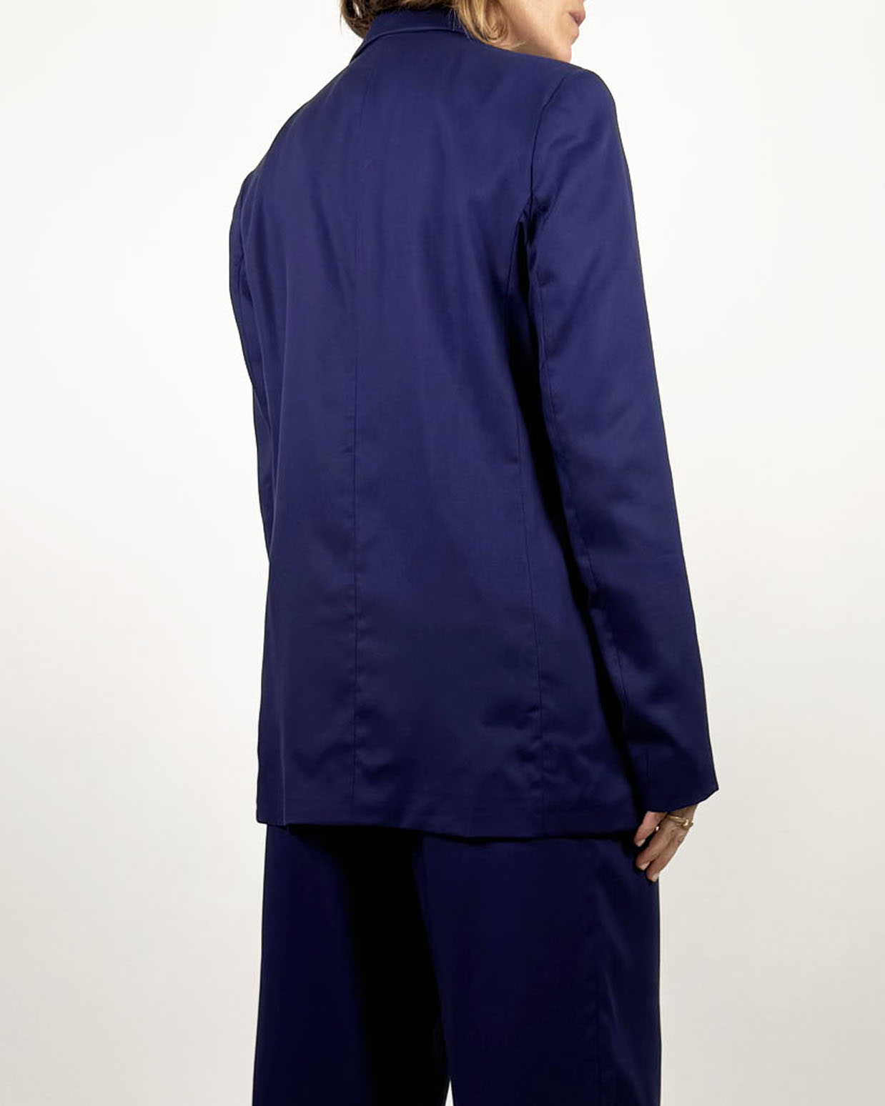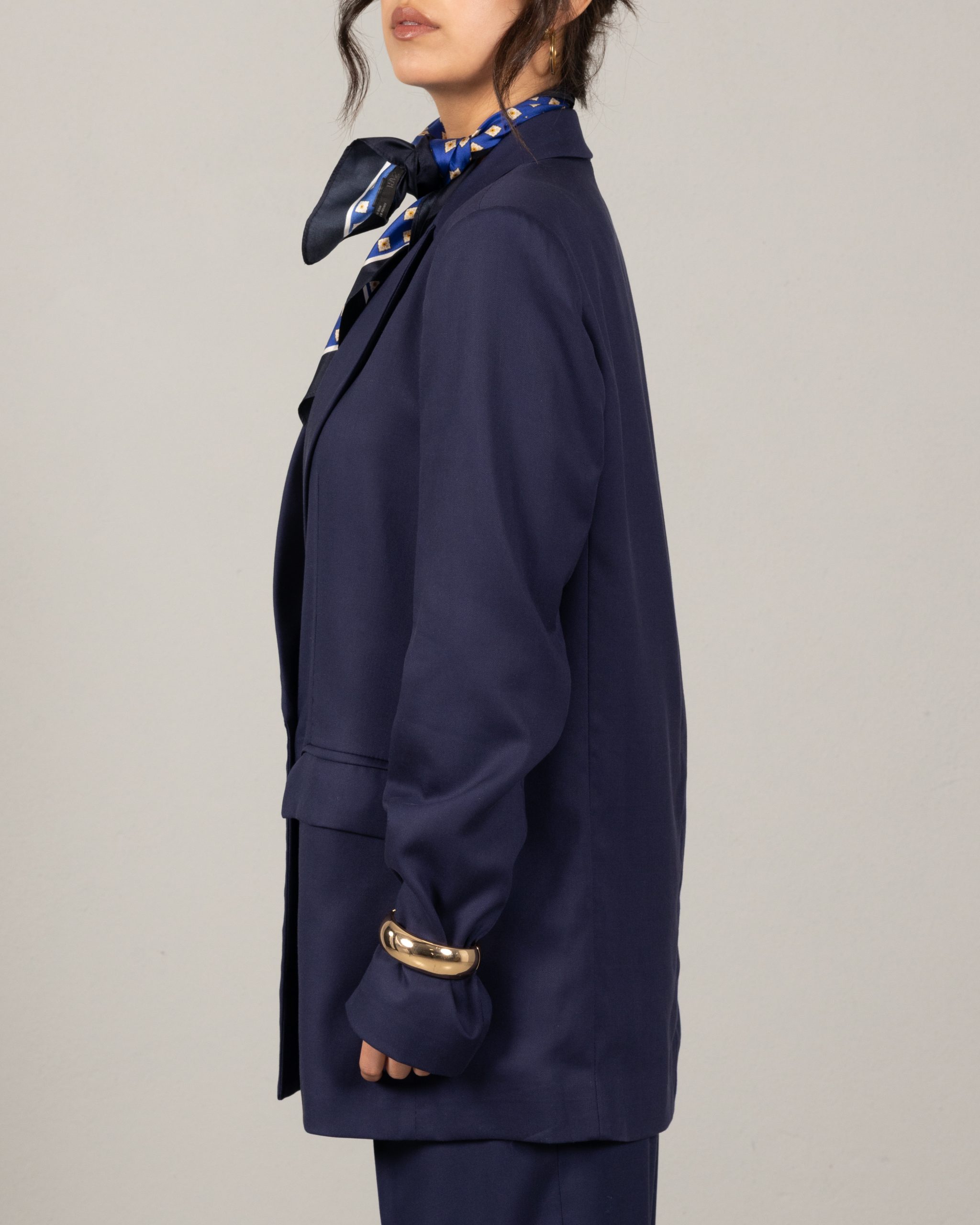 Blazer dal taglio sartoriale in un meraviglioso tessuto misto tencel lino, dalla linea dritta e morbida con leggero doppiopetto. Foderato in tono. Da portare sia spezzata che a completo con il suo pantalone San Diego Gold.