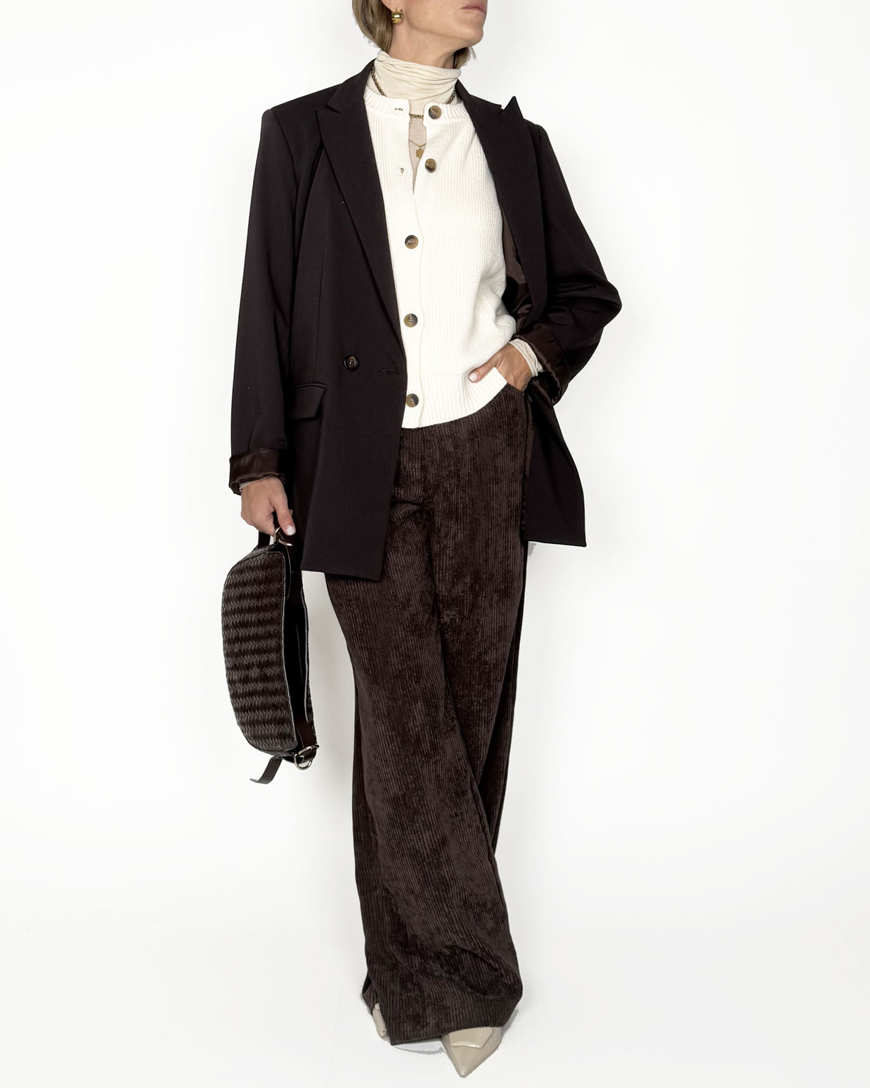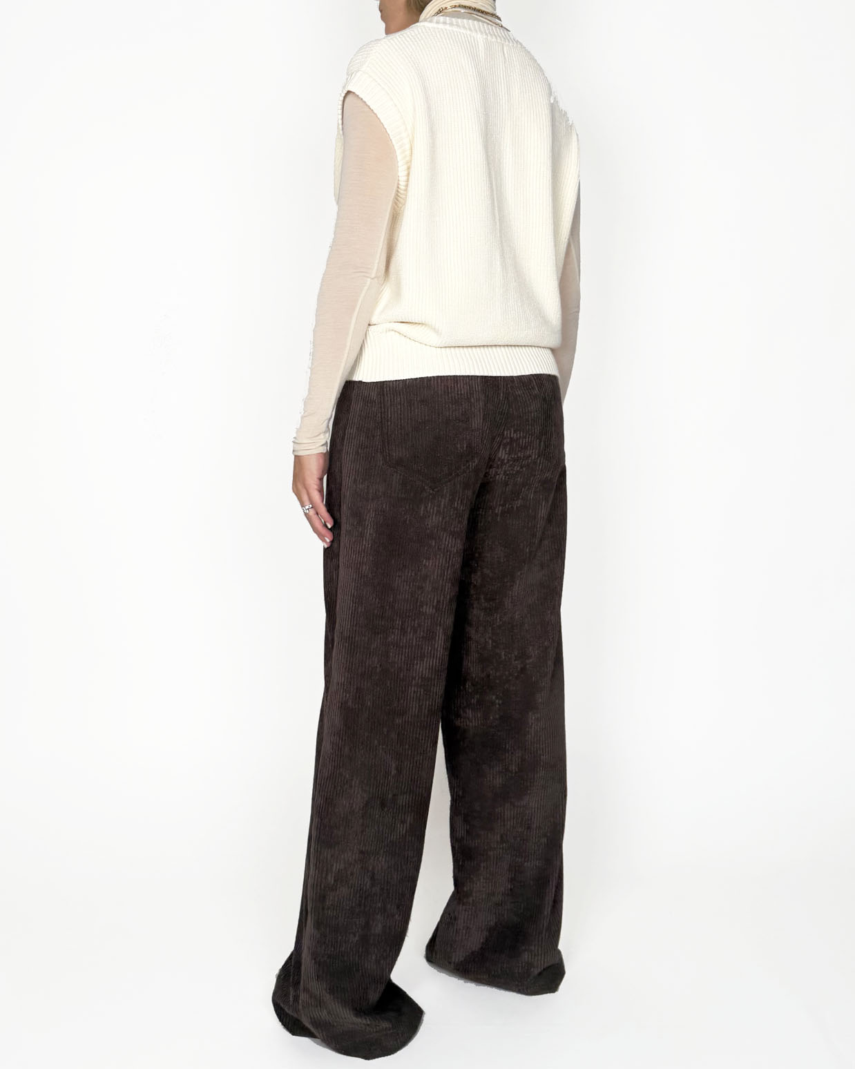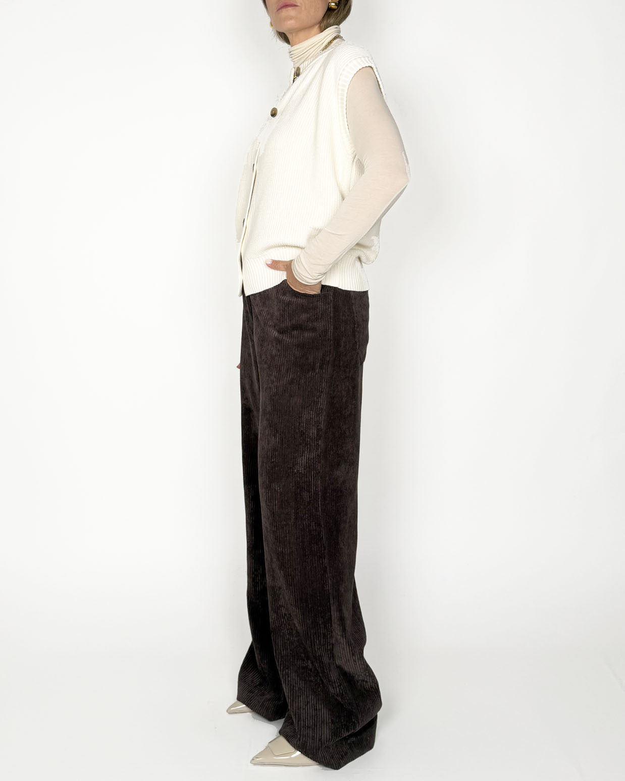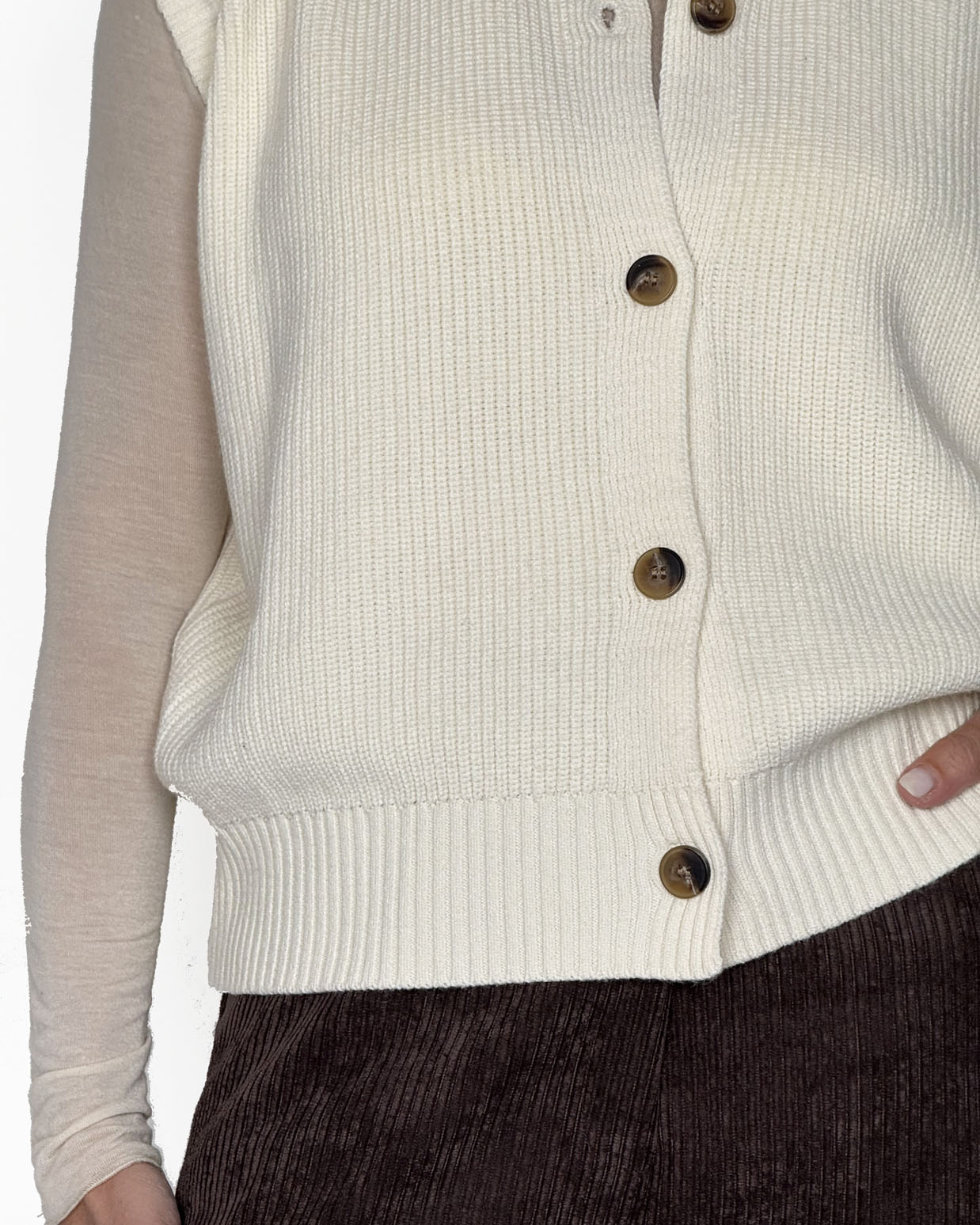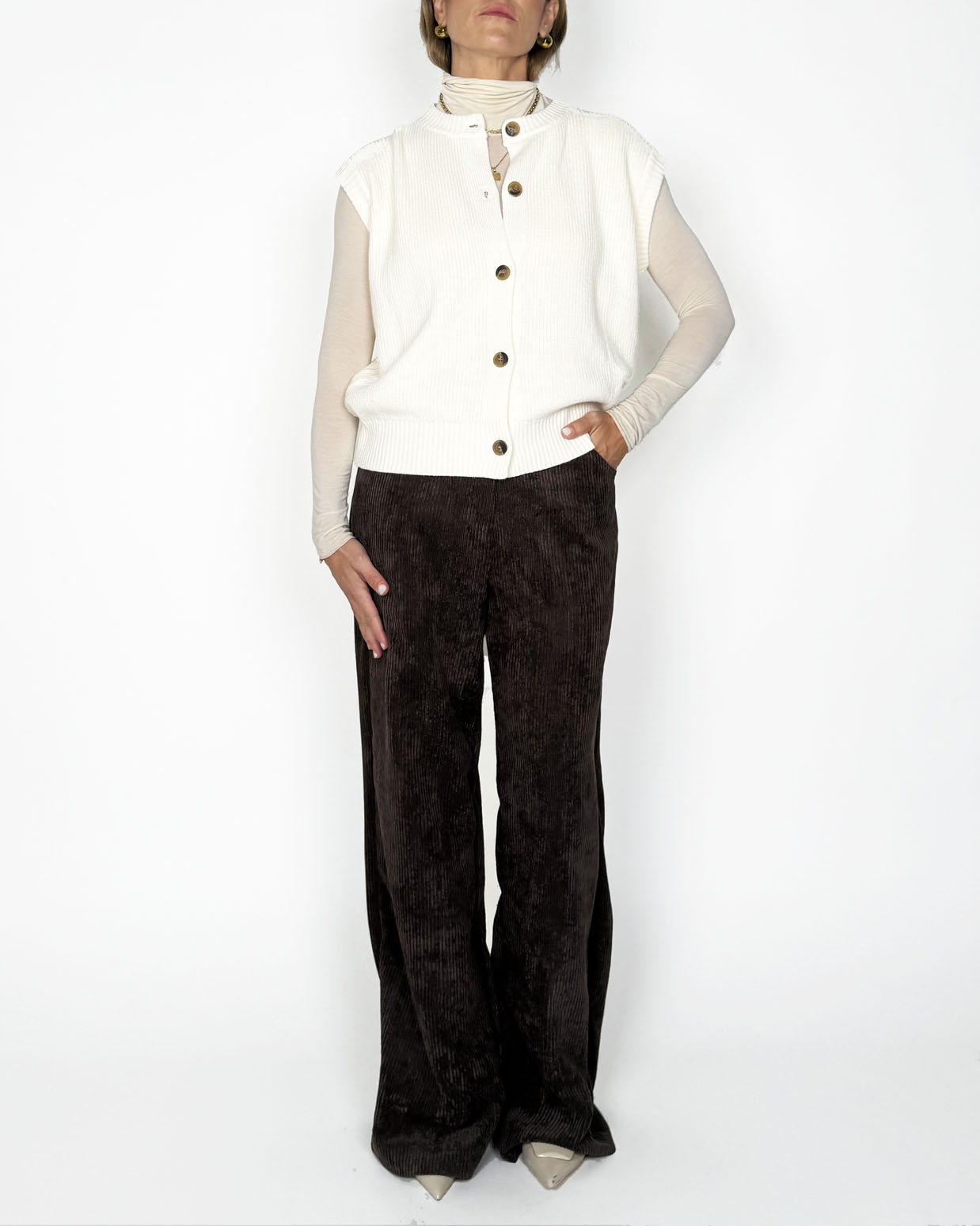 Gilet a coste in misto lana viscosa, vestibilità morbida, filato caldo e confortevole.