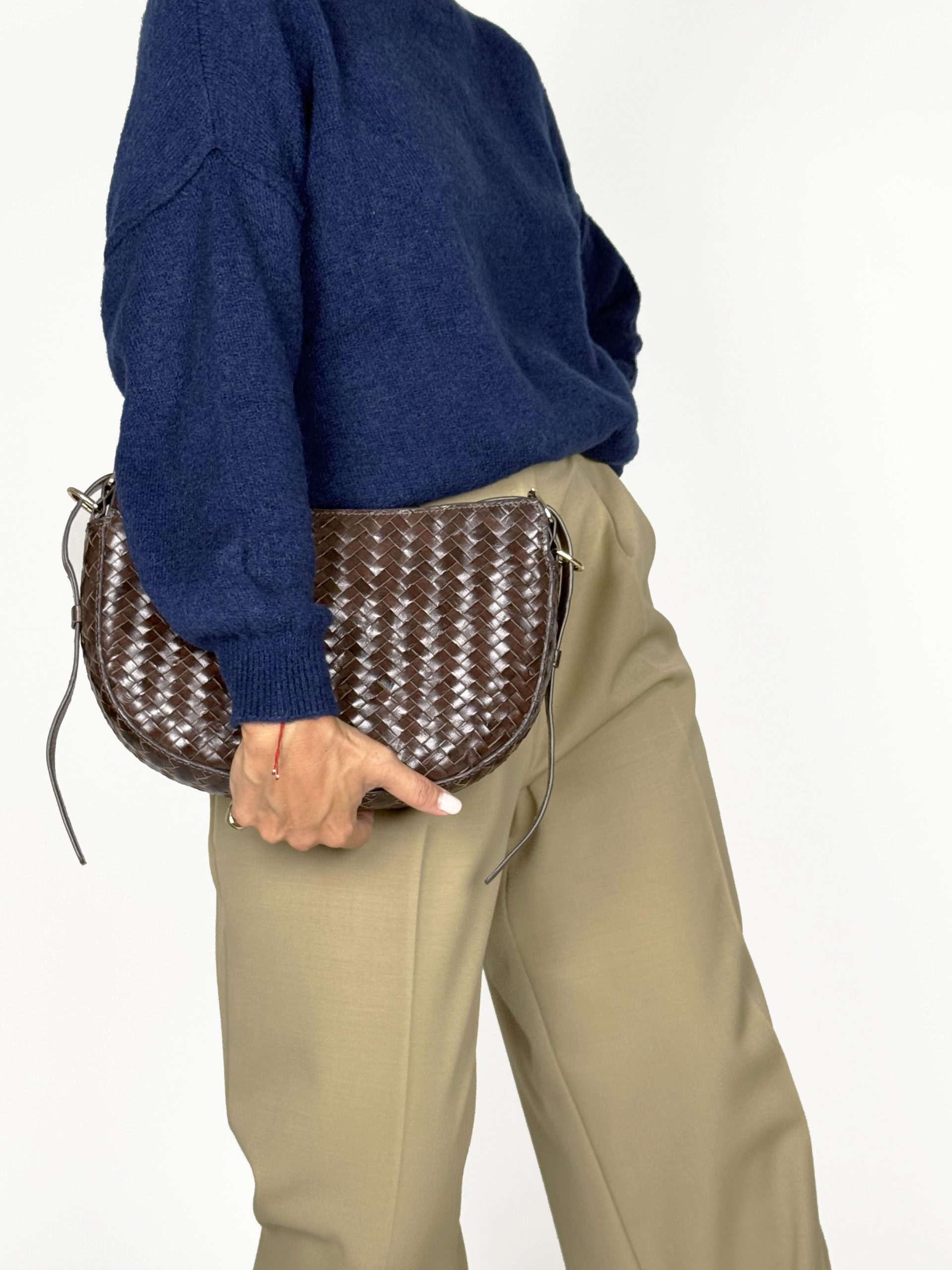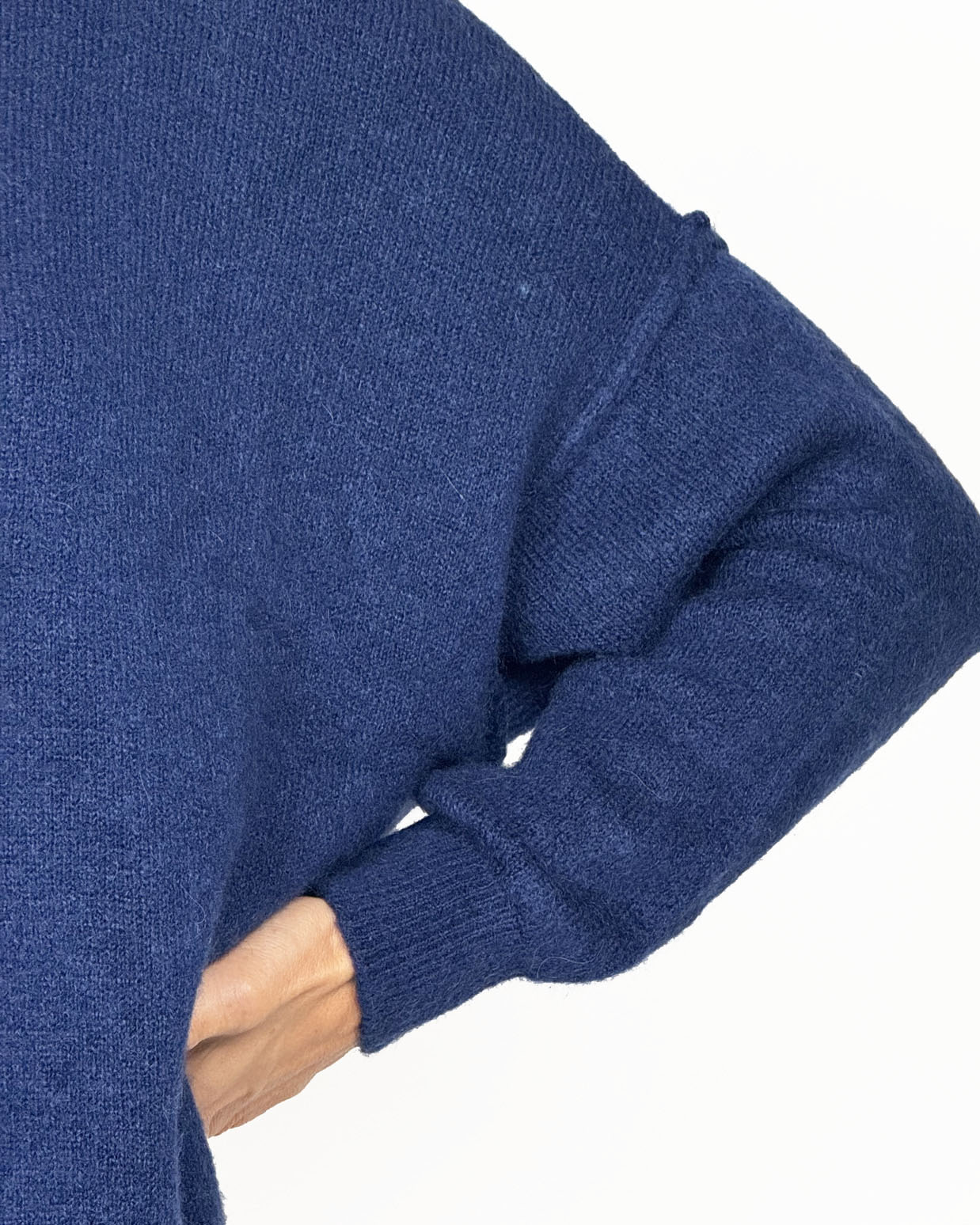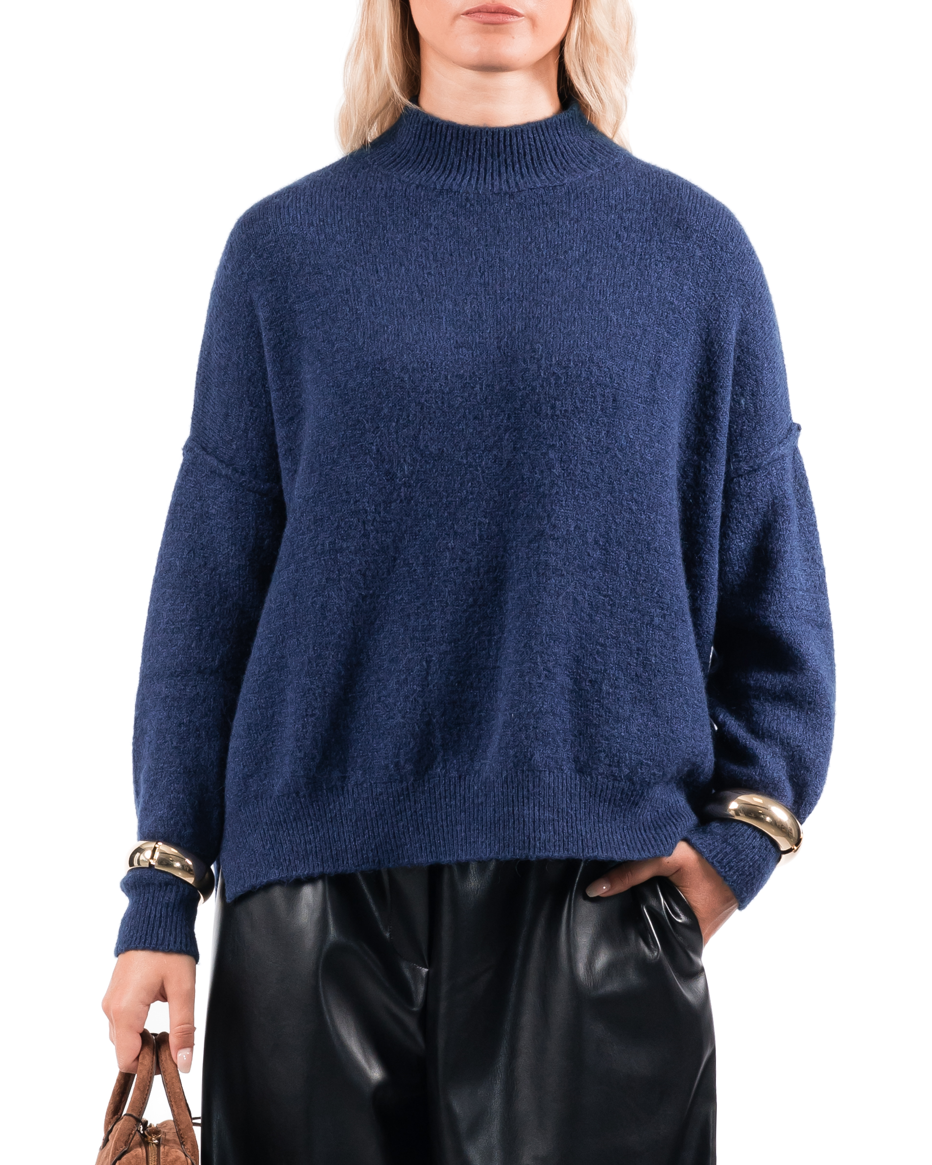 Maglia collo alto vestibilità comoda con cuciture a vista realizzata in un filato misto alpaca lana.