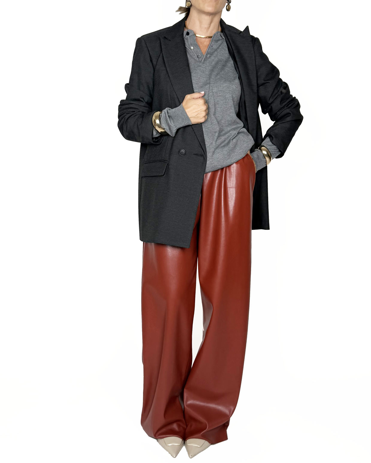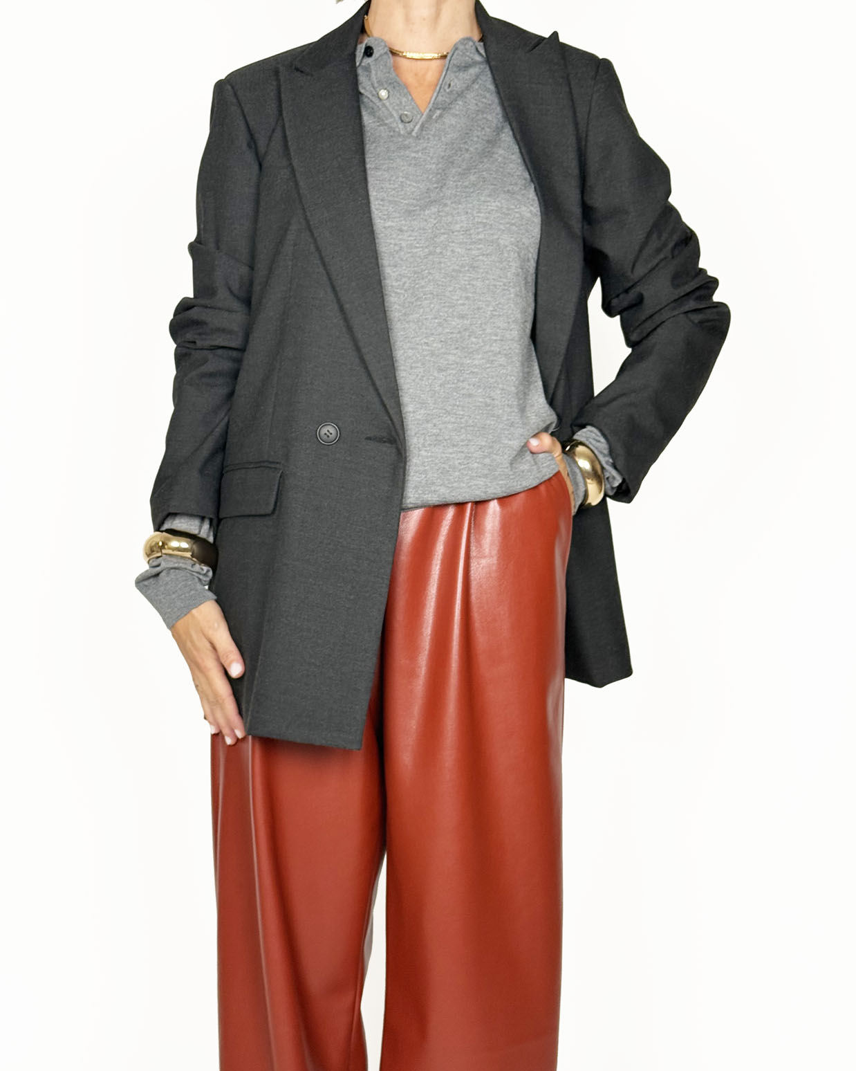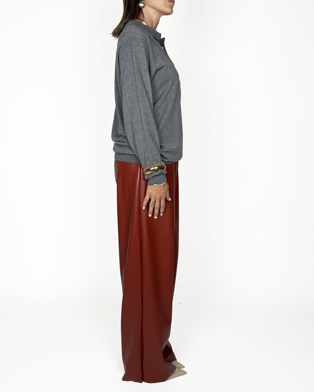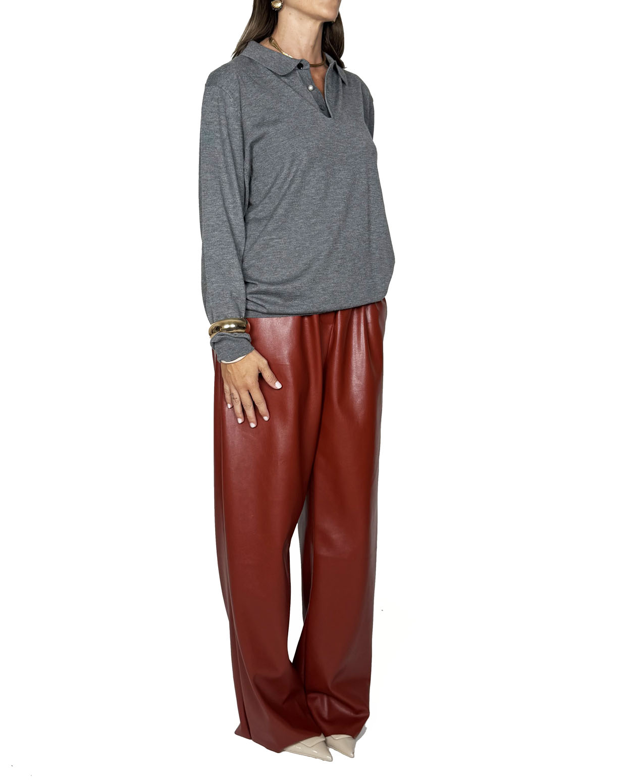 Maglia modello polo dalla linea morbida in misto lana merino, leggera, morbida e super confortevole.