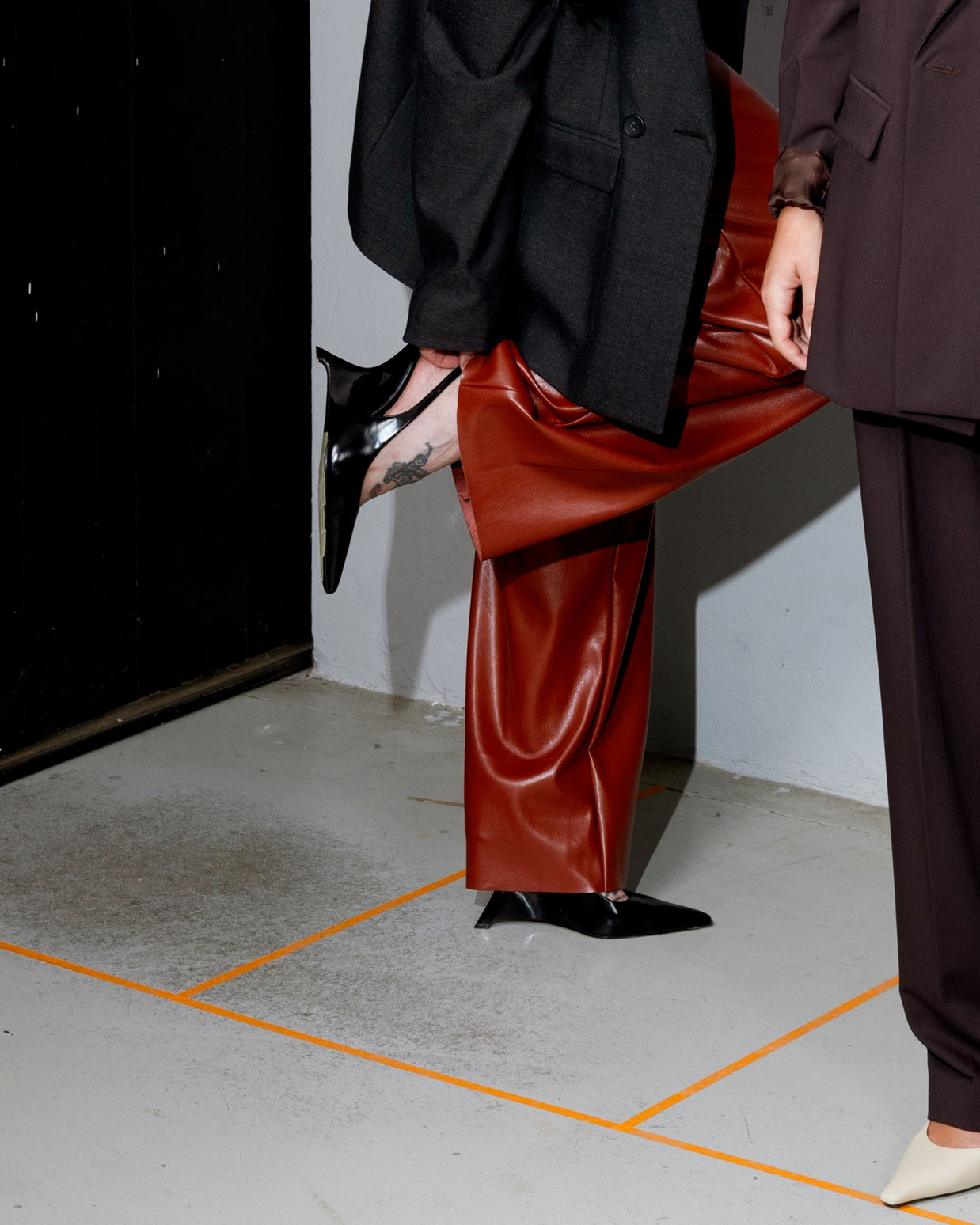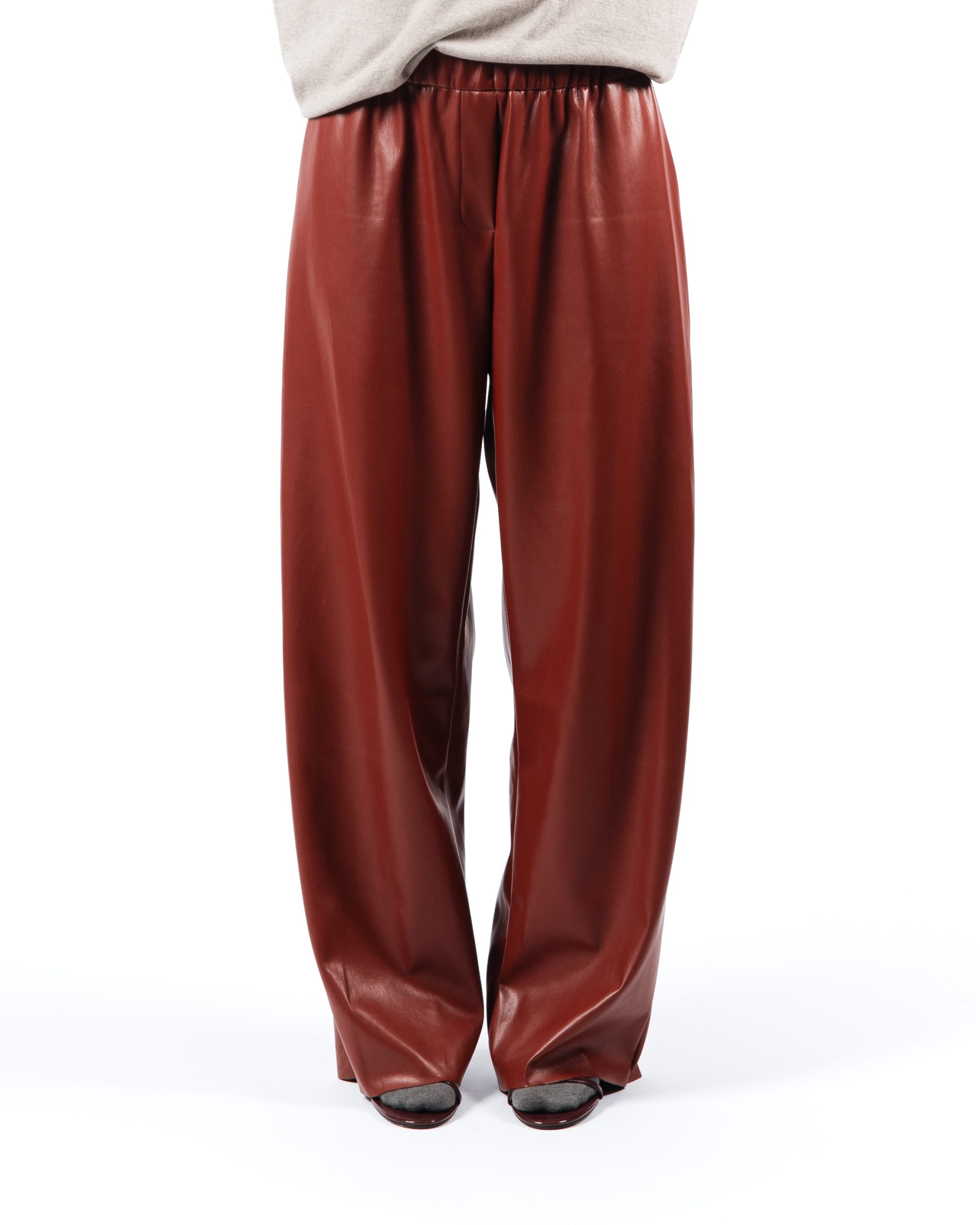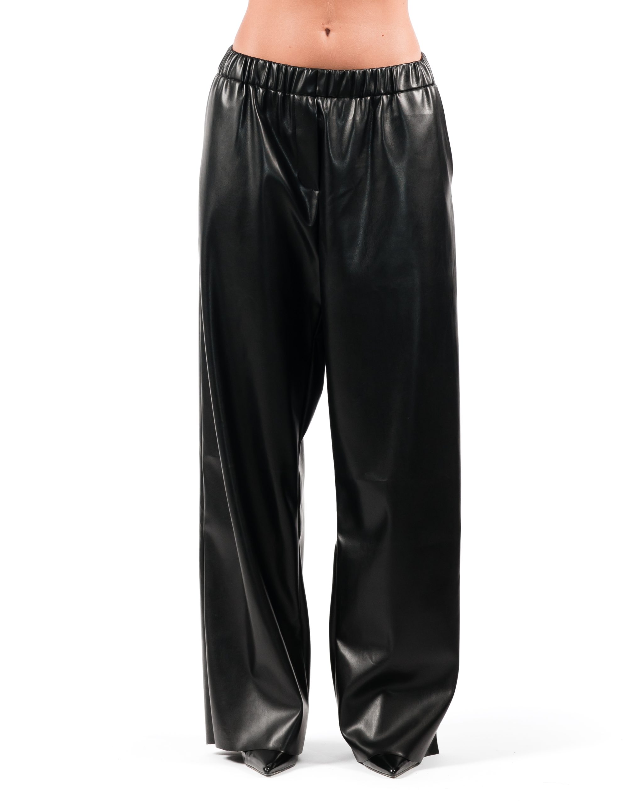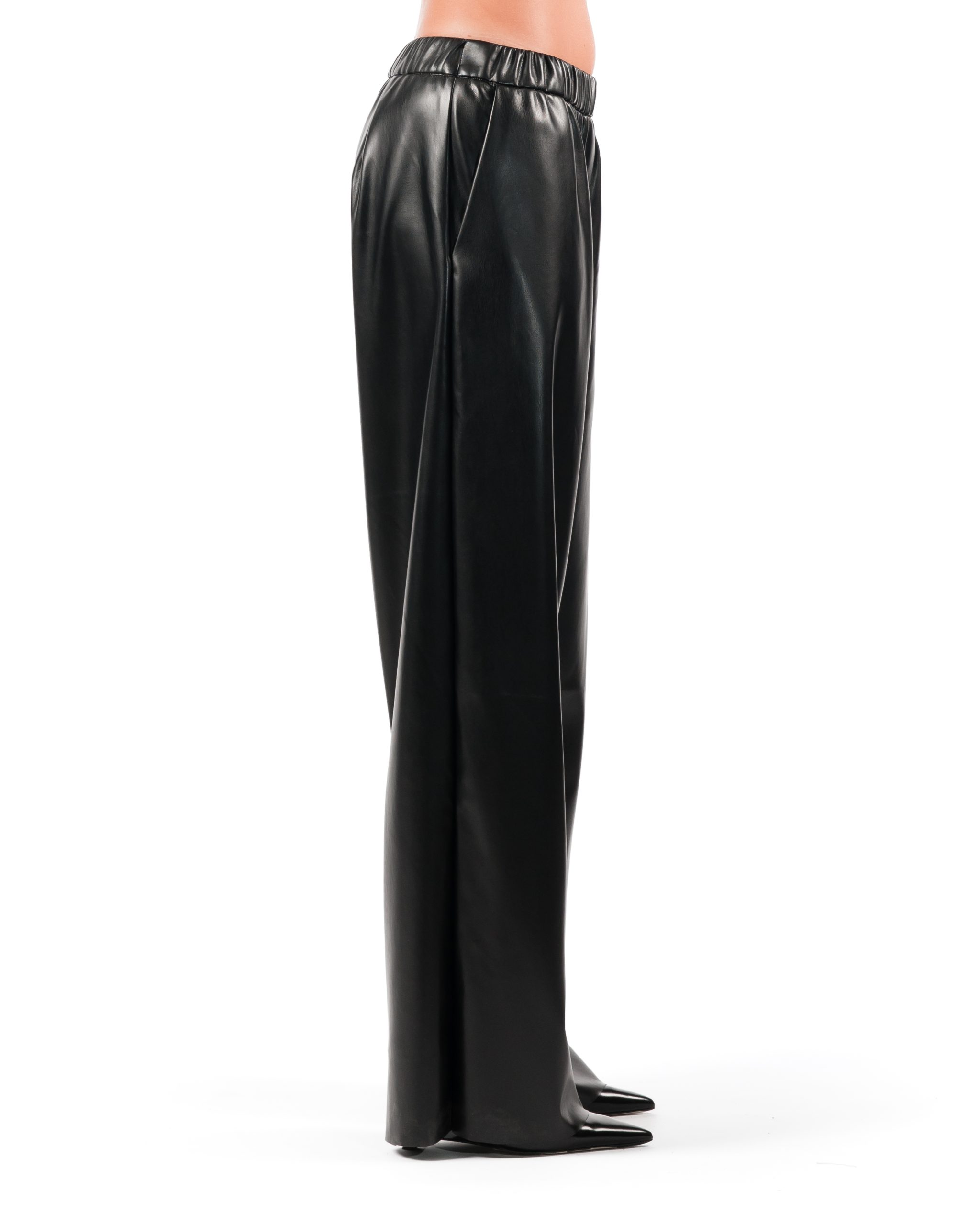Pantalone palazzo con elastico in vita in una ecopelle morbidissima e confortevole.